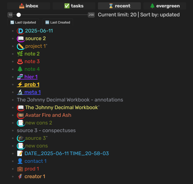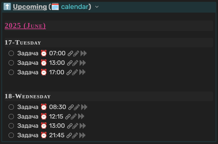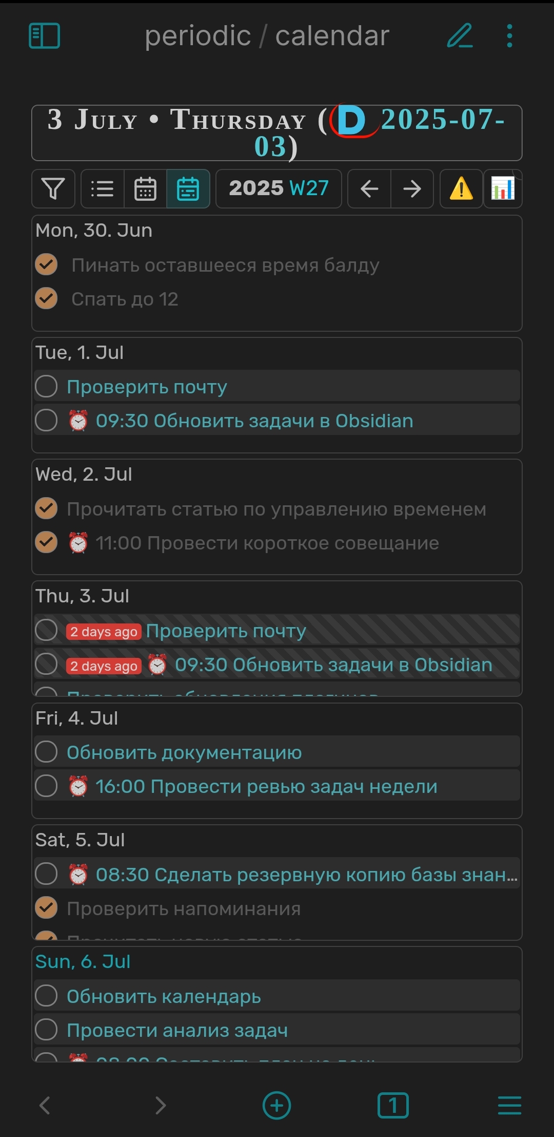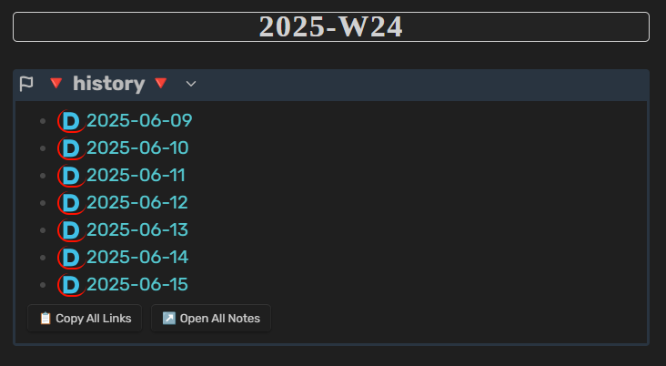 ) - В периодических заметках Dataview-запрос вынесен в отдельный view.js. Добавлена также возможность открыть заметки и скопировать на них ссылки