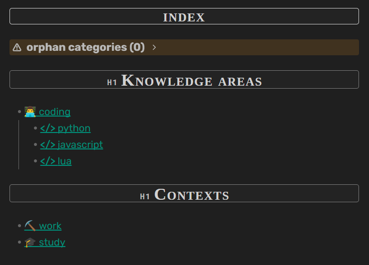 - Добавлен шаблон с Dataview-запросом, который ищет заметки, имеющие категорию, как у иерархии, но не упоминающиеся в иерархических заметках